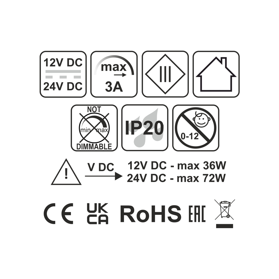 Zasilacz do LED STANDARD PLUS 12V DC o mocy 24W.